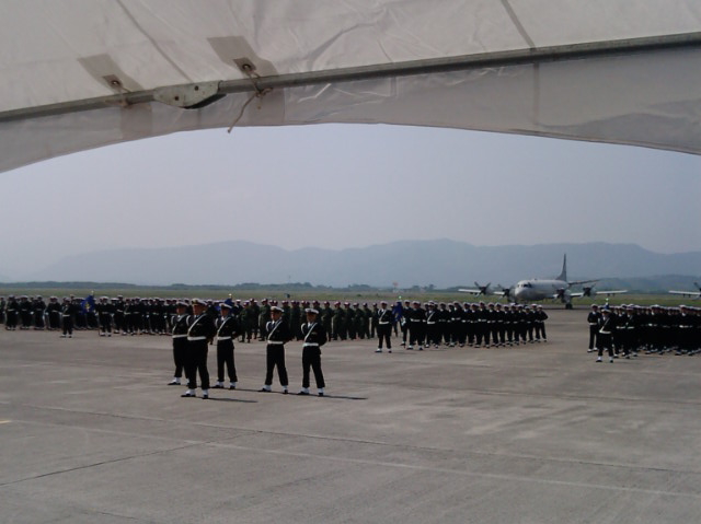 海上自衛隊鹿屋航空基地の自衛官による観閲式整列