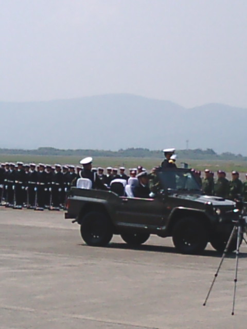 けっこう気温も上がってきて、自衛官の人達は立っているのも大変だろうな・・・と思ったけれど、誰一人倒れる人もなく、最後まで素晴らしい規律の中行われた観閲式でした。この人もとっても喜んでいたみたい。